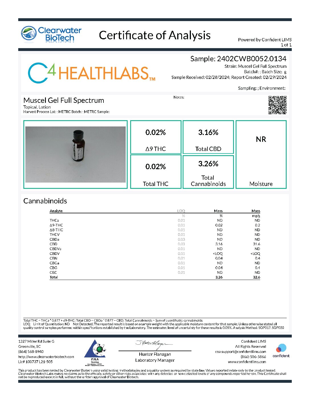 C4 Healthlabs muscle relief: Fast-acting and long-lasting, our CBD muscle gel is blended with soothing and restorative ingredients to minimize the impacts of inflammation, tension, and overworked muscles. Organic aloe leaf juice carries functional ingredients such as meadowfoam seed oil, menthol, capsicum, and CBD, among other soothing naturals. Light on the skin and fast-absorbing, this CBD gel is meant to be applied topically for quick, targeted relief. Available in Full Spectrum and THC-Free.