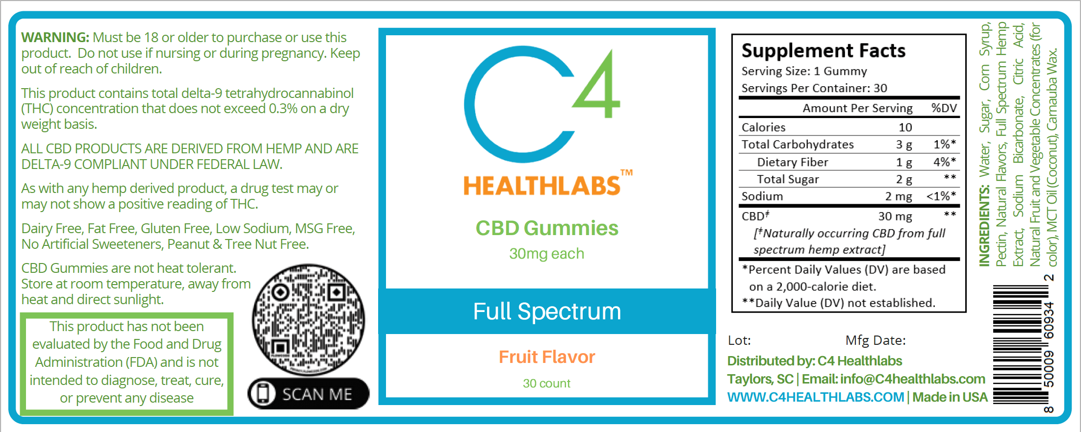 C4 Healthlabs customer request: Blended to promote balance and wellness, these full-spectrum CBD gummies deliver the full benefits of cannabidiol within easily halved and/or shared gummies. An enjoyable, bright fruit flavor and 10 calories per serving support daytime and evening use. Try these CBD gummies for a delicious serving of your daily CBD.